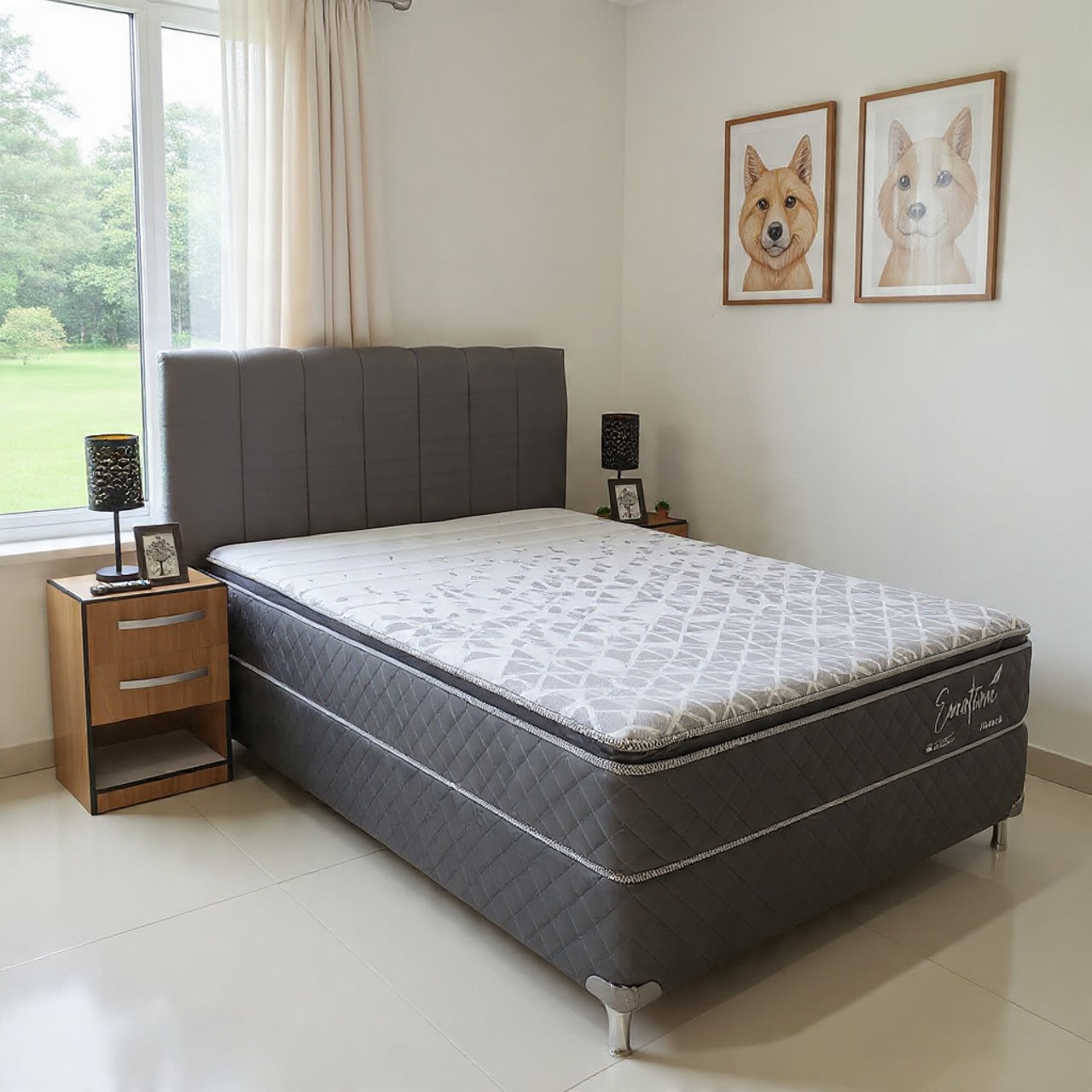 Sommier Emotion Plus + Cabecera Acolchada + 2 Mesitas Cubanas