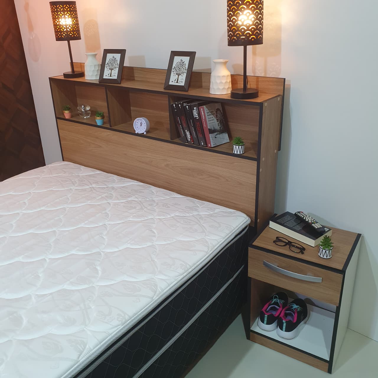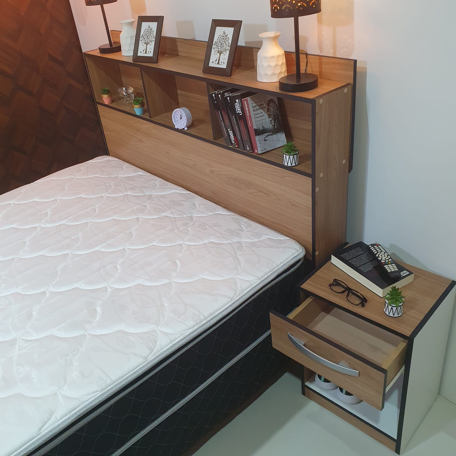 Sommier Emotion Plus + Cabecera París + 2 mesas con 1 cajón